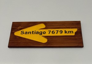 This sign shows the distance from Georgetown, Texas to Santiago de Compostela, Spain
